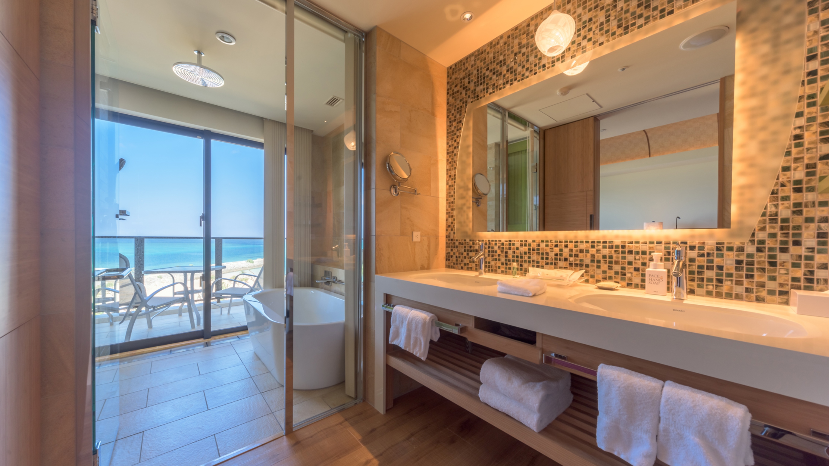 「プレミアムオーシャンツイン/キング」のバスルーム(ビューバス)も最高!※部屋により形状が異なります