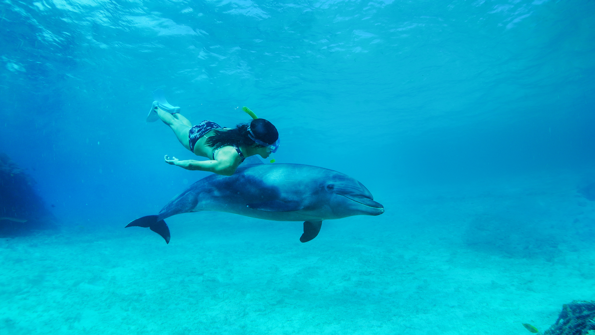 ドルフィンプログラムではイルカと一緒に泳ぐことも可能です。