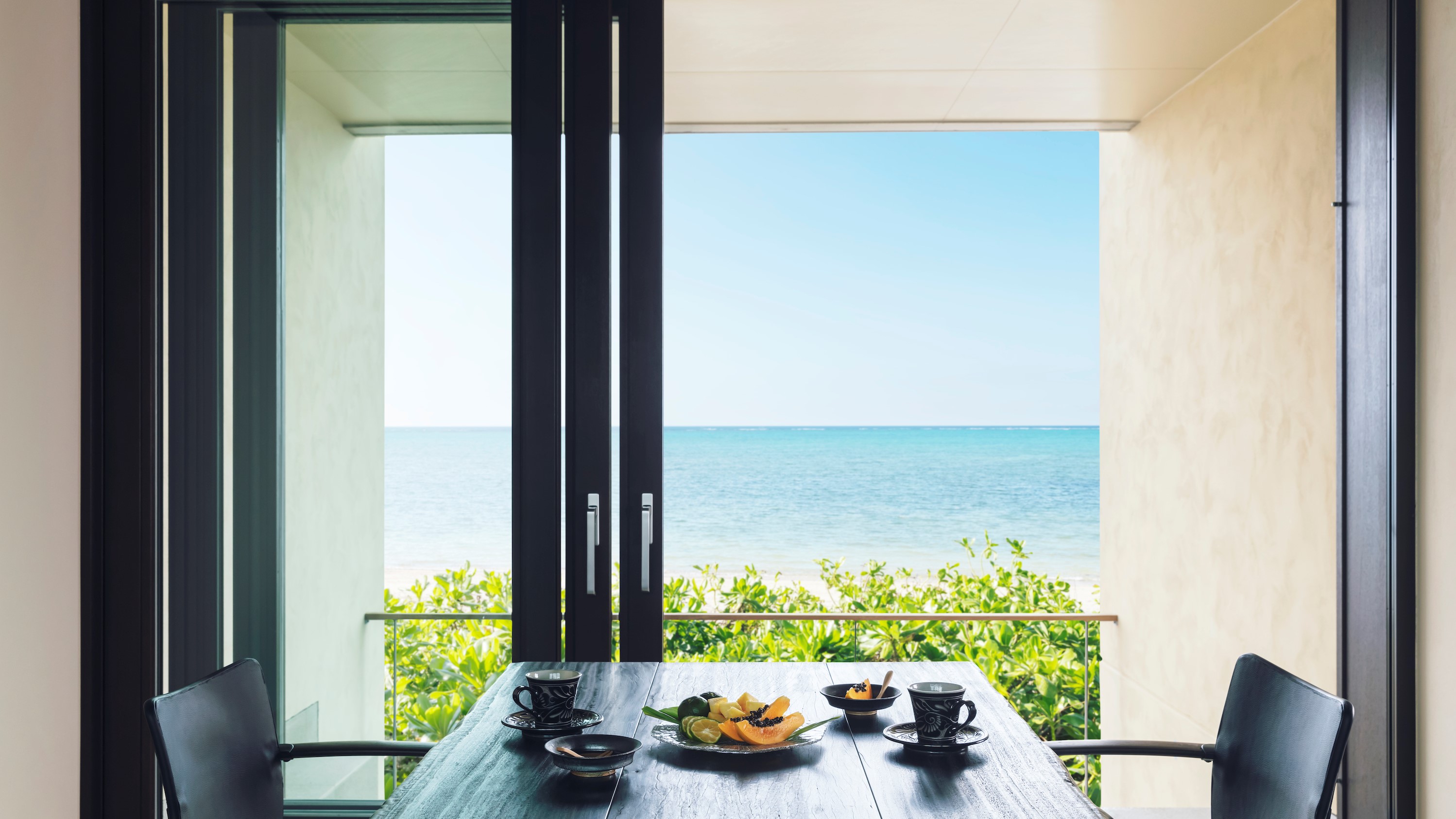 すべての客室がオーシャンフロントだからこそ、海を眺めながらプライベートにゆったりとお食事を召し上がっていただけます。