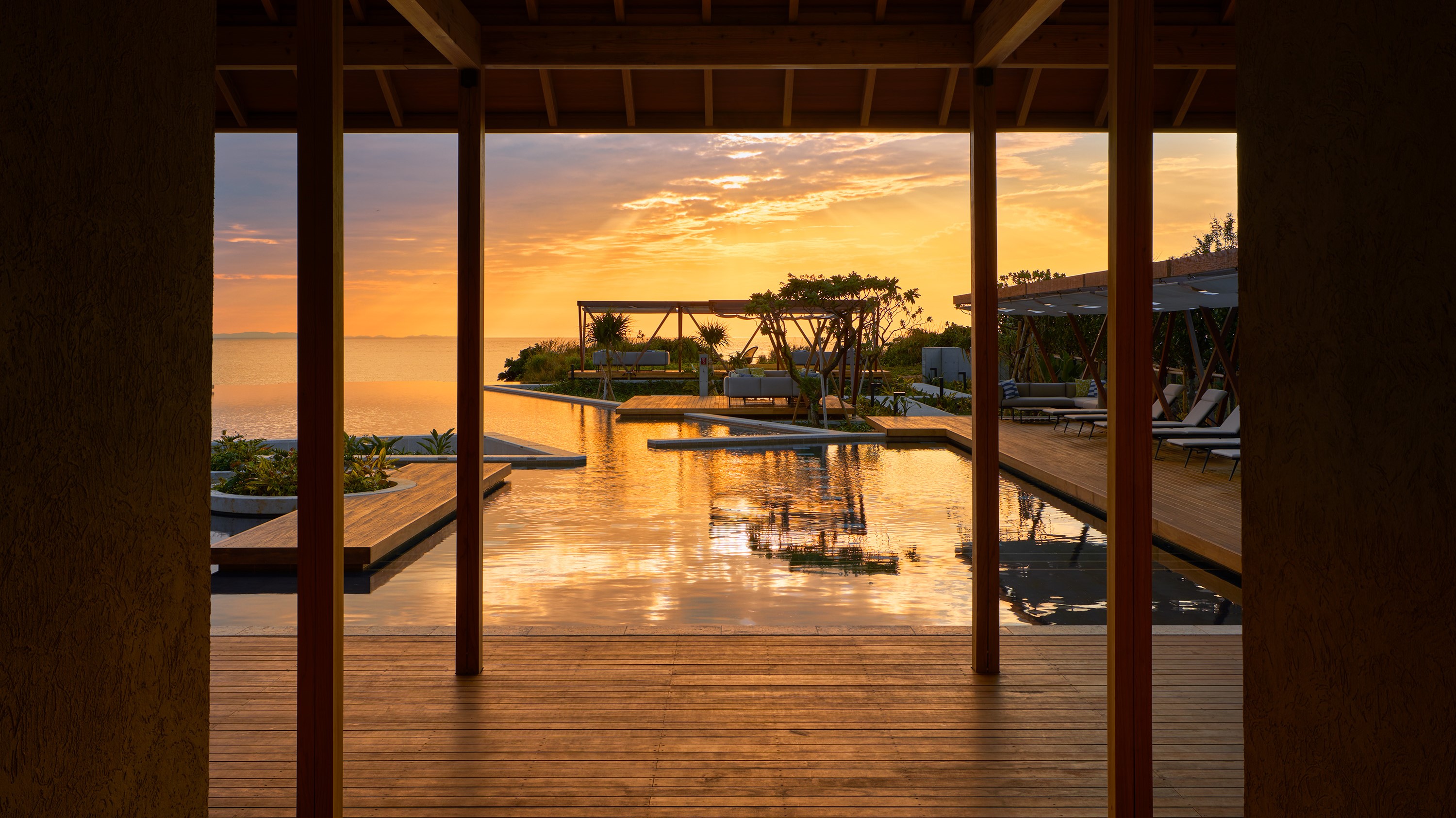 目の前に広がるサンセットを眺めながら二人でゆっくり過ごすプール。