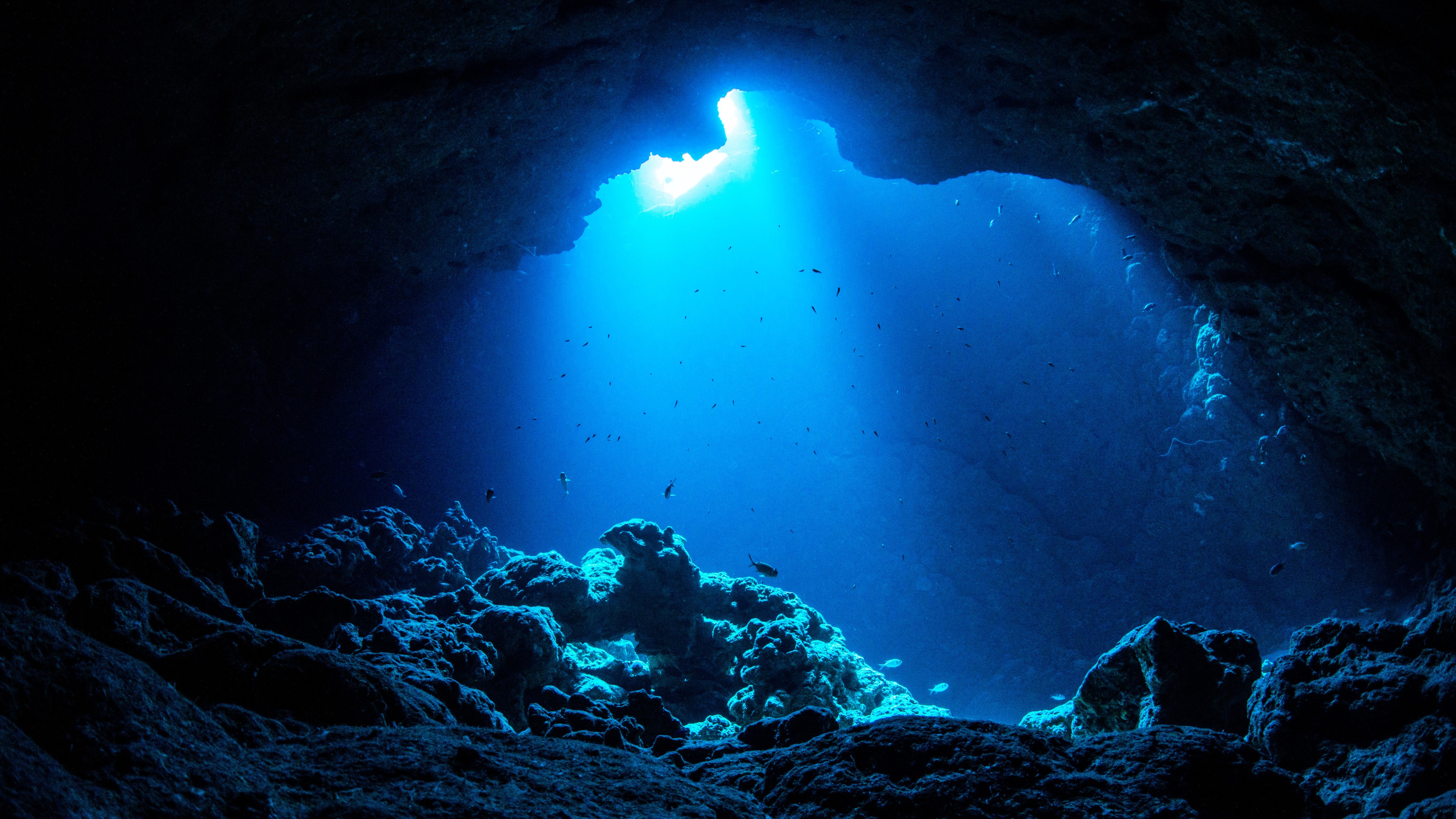 読谷村と恩納村の境目にある有名なダイビングスポット、青の洞窟。