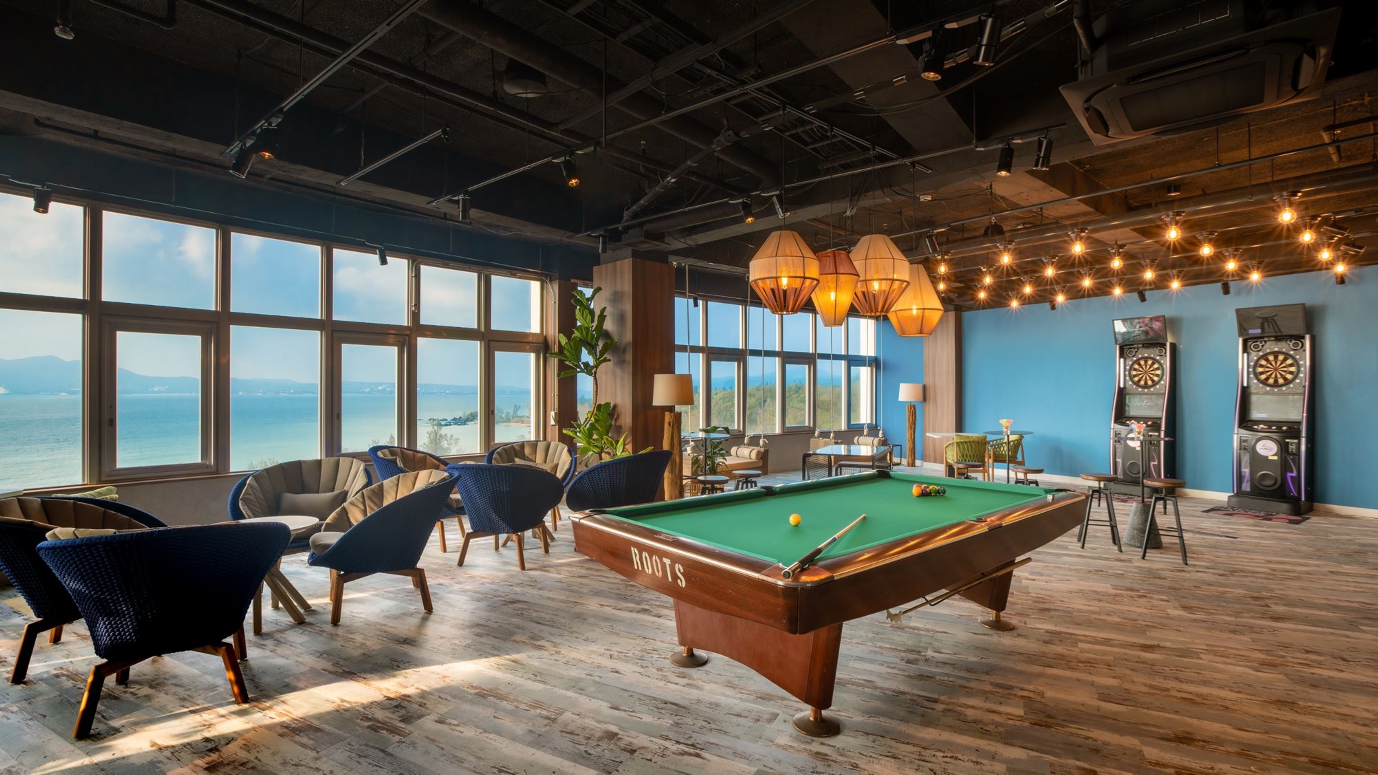 2023年夏リニューアルオープンした、ラウンジにビリヤードやダーツ、テーブルサッカーやボードゲームがある、友人同士で遊びながら滞在できるホテルです。