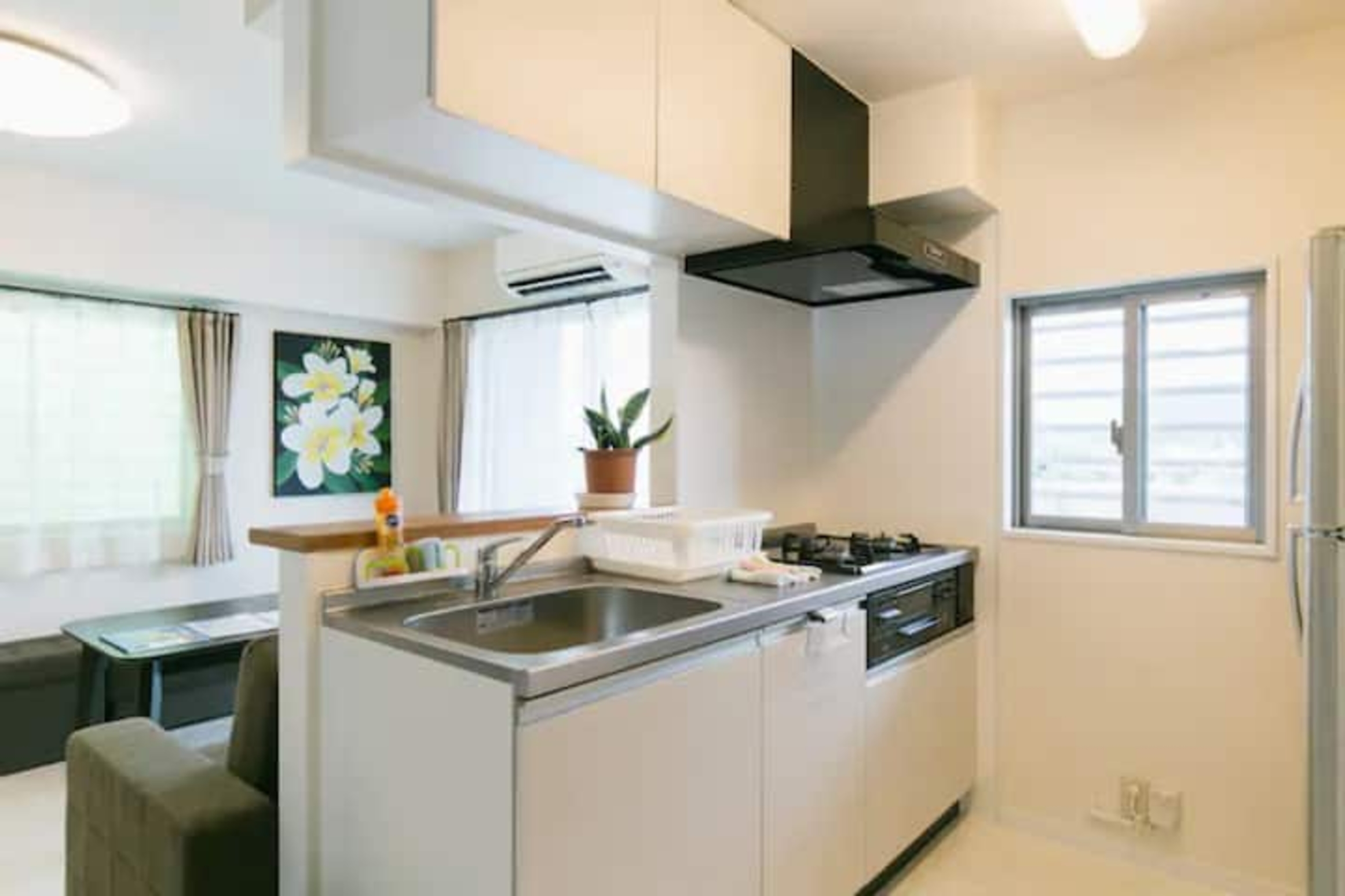 徒歩圏内にブルーシール・A&W、ほっともっと、かねひで(スーパー)、コンビニ、居酒屋やカフェがあります。1店舗ずつまわれば、レンタカーなしで数日間滞在しても、飽きずに過ごせるでしょう。全室キッチン付なので、近くのスーパーで買った沖縄食材を自分で料理できるのもGOODです。