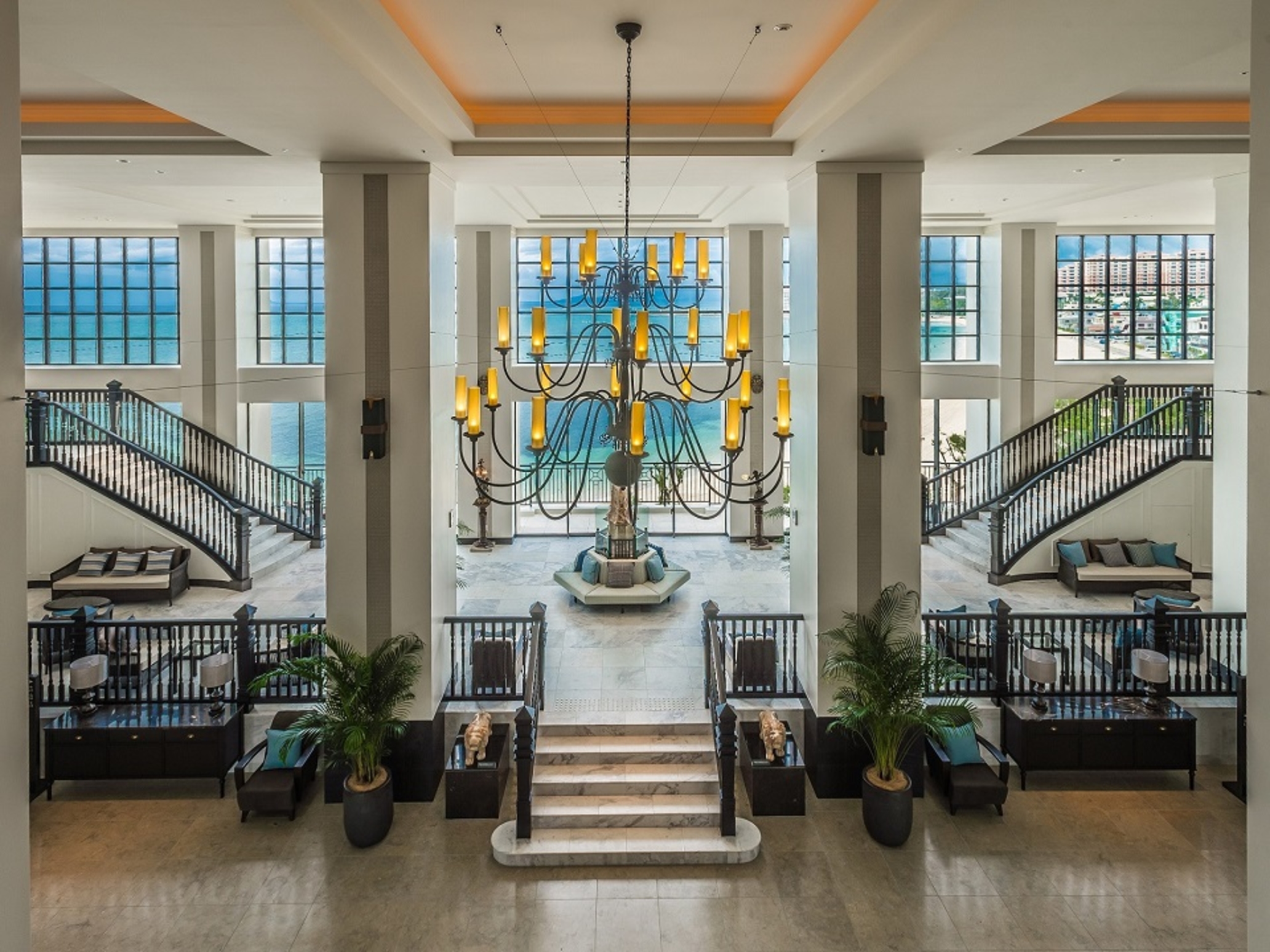 那覇空港から車を走らせること約1時間、やっと到着したホテルのロビーにテンション上がること間違いなし!